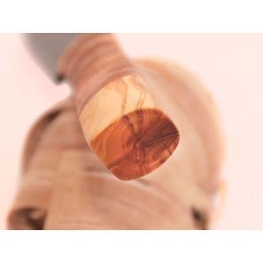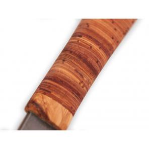 Verwendetes Material: Olivenholz, Birkenrinde, handgeschmiedete Damastmesserklinge unseres Meisterschmiedes