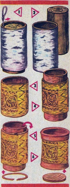- Zum Bemalen sollte man reichlich Fantasie und einen Malkasten haben. Die bekannteste Art der Bemalung, auch in Kombination mit Kerbung und Prägung ist die „Domschinskaya Beresta”