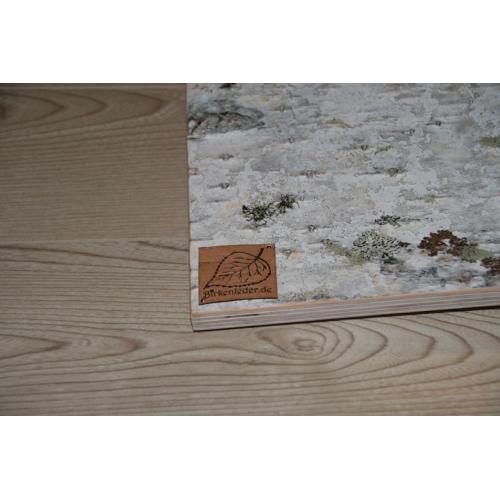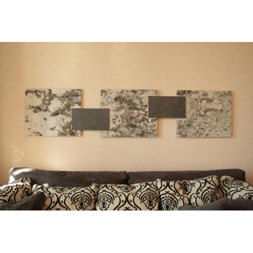 Eine schöne Collage, auf Kundenwunsch gefertigt, ziert nun eine große weiße Wand in einem modern eingerichteten Haus. Yanas Idee Schieferstein und Birkenrinde zu kombinieren hat dem Kunden sehr gut gefallen! Denn, es wurde erwartet, dass die Collage sich mit dem Rest des Raumes ergänzt, puristisch ist und Natürlichkeit ausstrahlt.