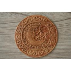 Der Durchmesser der Punzierung ist knapp 12cm und findet seinen Platz im unteren Bereich des Köchers und ist ein typisches Muster für das mittelalterliche Ungarn.