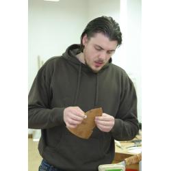 Wie schon erwähnt geben wir ab 2014 2 parallele Kurse. Yana hält den Birkenrindedosen-Kurs und Wladi bringt Euch bei wie man Messergriffe aus Birkenrinde herstellt.