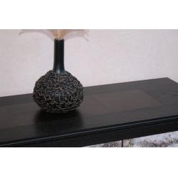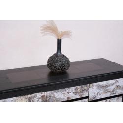 Die Sideboard Platte habe ich durch eingerahmte und edle Ledereinlässe durchbrochen. Das Leder ist ebenfalls durch geschmiedetes Eisen eingerahmt.